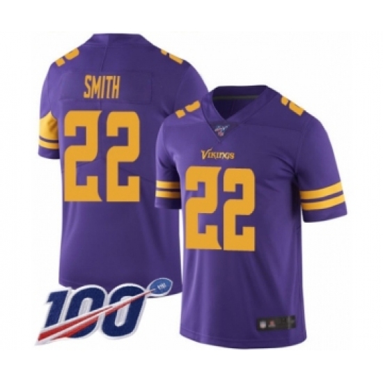 Men's Minnesota Vikings #22 Harrison Smith Limited Purple Rush Vapor Untouchable 100th Season Football Jersey