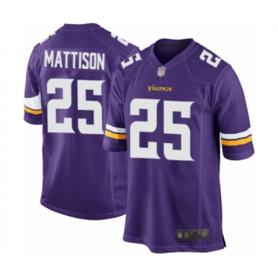 >Men's Minnesota Vikings #25 Alexander Mattison Game Purple Team Color Football Jersey
