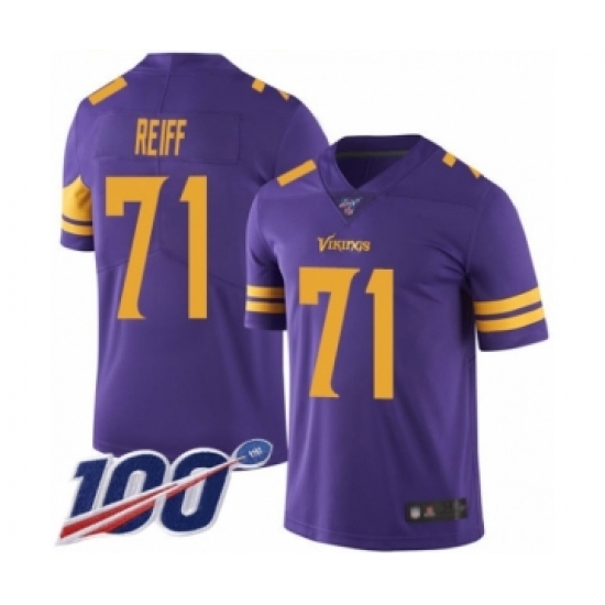 >Men's Minnesota Vikings #71 Riley Reiff Limited Purple Rush Vapor Untouchable 100th Season Football Jersey