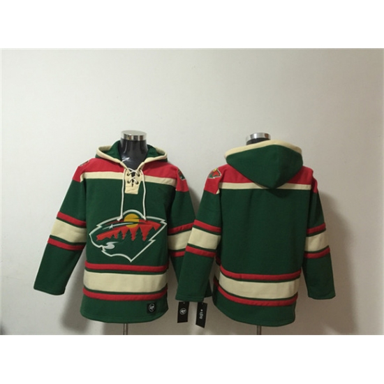Men's Minnesota Wild Blank Green Lace-Up Pullover Hoodie