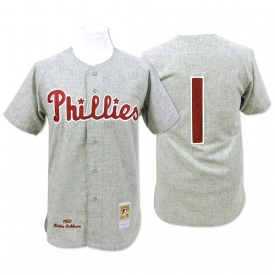 Men's Mitchell and Ness 1950 Philadelphia Phillies #1 Richie Ashburn Replica Grey Throwback MLB Jersey