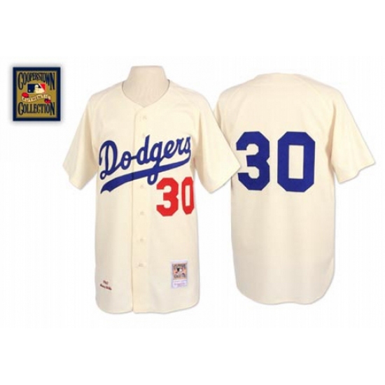Men's Mitchell and Ness 1962 Los Angeles Dodgers #30 Maury Wills Authentic Cream Throwback MLB Jersey