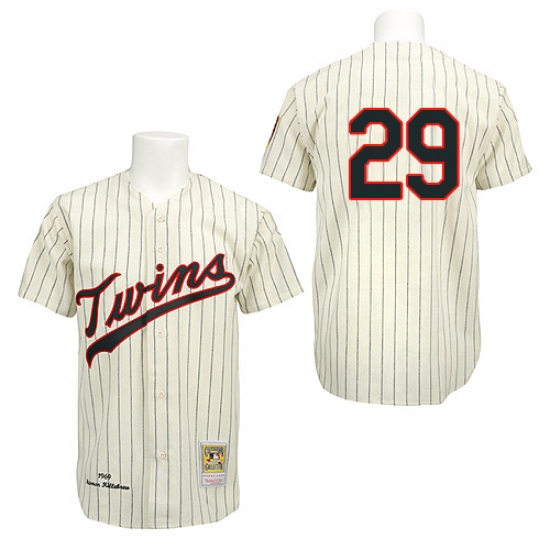 Men's Mitchell and Ness 1969 Minnesota Twins #29 Rod Carew Authentic Cream Throwback MLB Jersey
