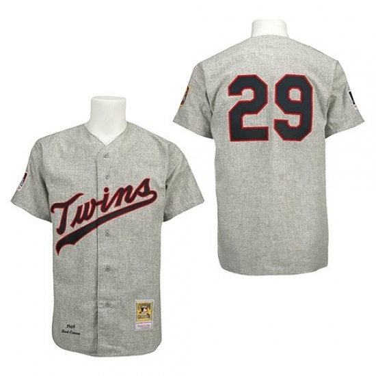 Men's Mitchell and Ness 1969 Minnesota Twins #29 Rod Carew Replica Grey Throwback MLB Jersey