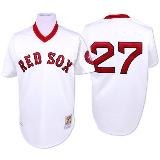 Home>MLB>Boston Red Sox>Carlton Fisk>Men's Mitchell and Ness Boston Red Sox #27 Carlton Fisk Replica White Throwback MLB Jersey