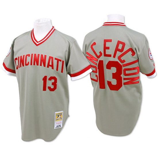 Home>MLB>Cincinnati Reds>Dave Concepcion>Men's Mitchell and Ness Cincinnati Reds #13 Dave Concepcion Authentic Grey Throwback MLB Jersey