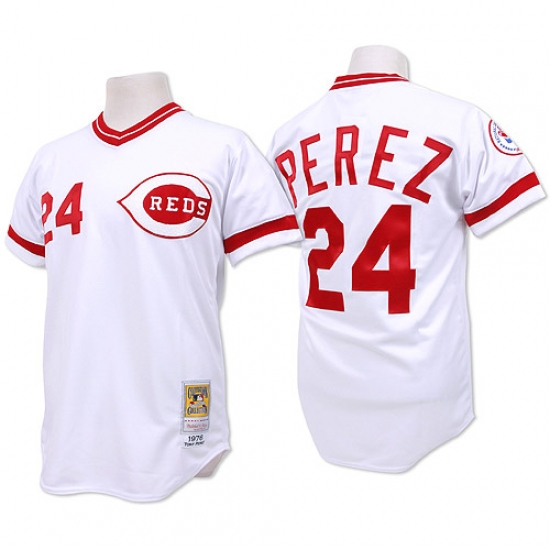 Home>MLB>Cincinnati Reds>Tony Perez>Men's Mitchell and Ness Cincinnati Reds #24 Tony Perez Authentic White Throwback MLB Jersey