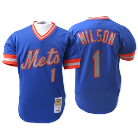 Men's Mitchell and Ness New York Mets #1 Mookie Wilson Replica Blue Throwback MLB Jersey