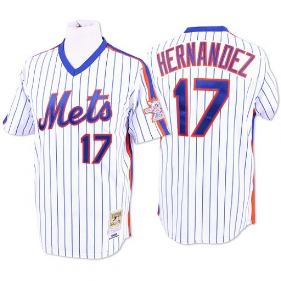 Home>MLB>New York Mets>Keith Hernandez>Men's Mitchell and Ness New York Mets #17 Keith Hernandez Replica White/Blue Strip Throwback MLB Jersey