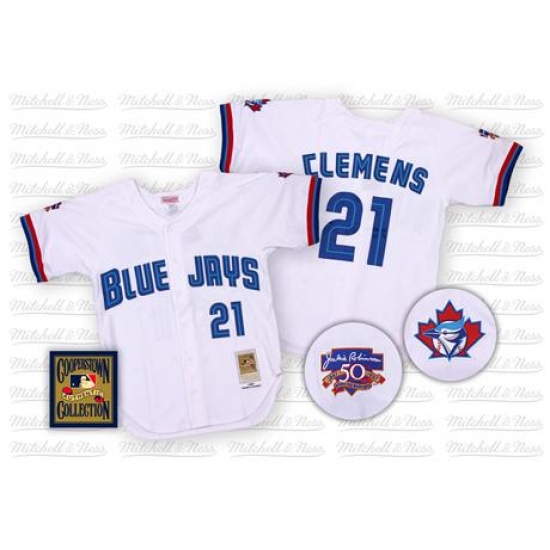 Home>MLB>Toronto Blue Jays>Roger Clemens>Men's Mitchell and Ness Toronto Blue Jays #21 Roger Clemens Replica White Throwback MLB Jersey