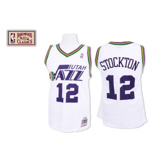 Men's Mitchell and Ness Utah Jazz #12 John Stockton Authentic White Throwback NBA Jersey