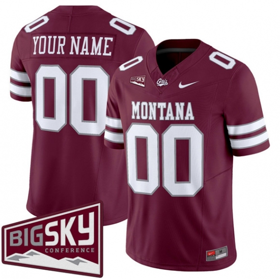 Men's Montana Grizzlies Active Player Custom Maroon 2025 F.U.S.E. Big Sky Patch Vapor Limited V1 Stitched Football Jersey