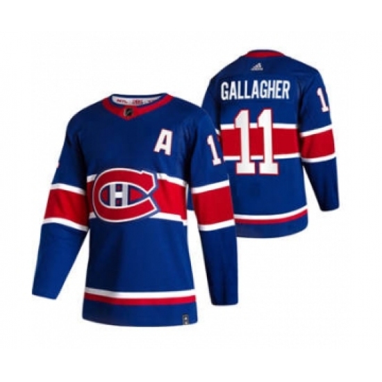 >Men's Montreal Canadiens #11 Brendan Gallagher Blue 2020-21 Reverse Retro Alternate Hockey Jersey