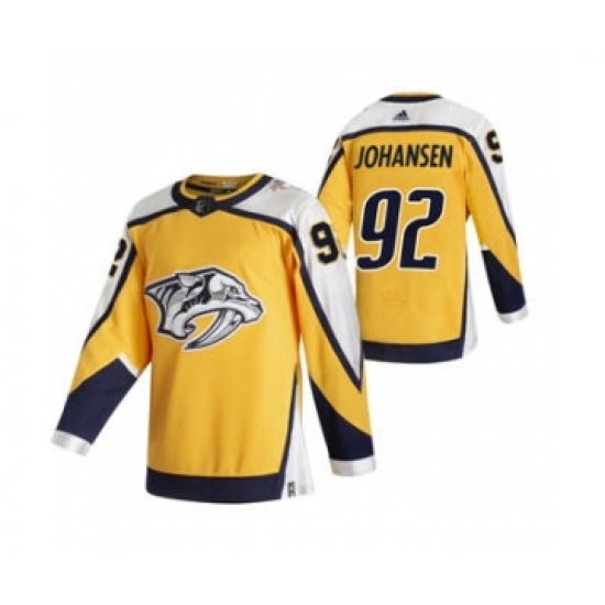 >Men's Nashville Predators #92 Ryan Johansen Yellow 2020-21 Reverse Retro Alternate Hockey Jersey