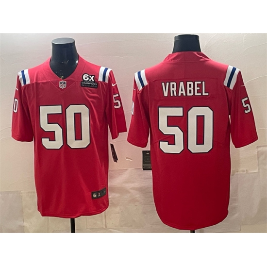 Men's New England Patriots #50 Mike Vrabel Red With 6x Super Bowl Champions Vapor Limited Football Stitched Jersey