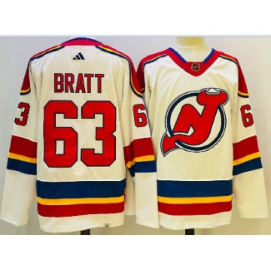 Men's Adidas New Jersey Devils #63 Jesper Bratt Authentic White Alternate NHL Jersey