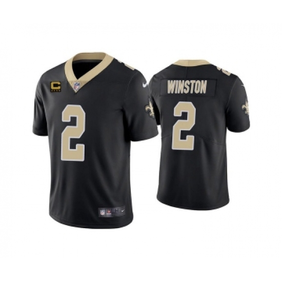 Men's New Orleans Saints 2022 #2 Jameis Winston Black With 4-star C Patch Vapor Untouchable Limited Stitched NFL Jersey