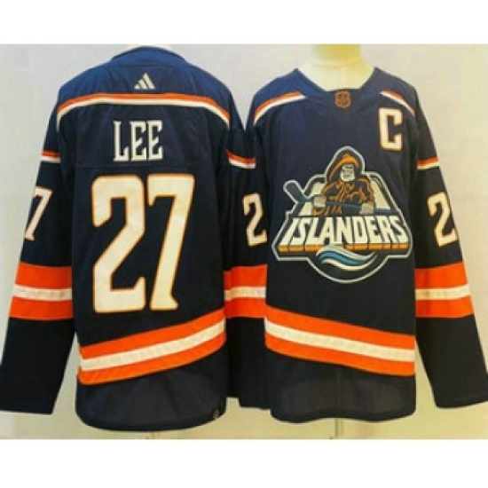 >Men's New York Islanders #27 Anders Lee Blue 2022 Reverse Retro Stitched Jersey