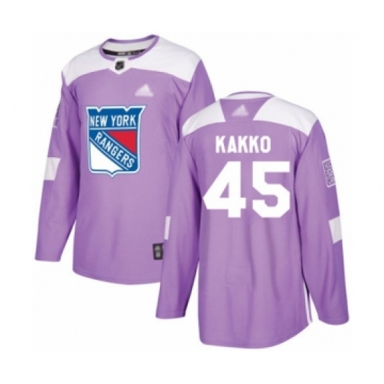 >Men's New York Rangers #45 Kaapo Kakko Authentic Purple Fights Cancer Practice Hockey Jersey