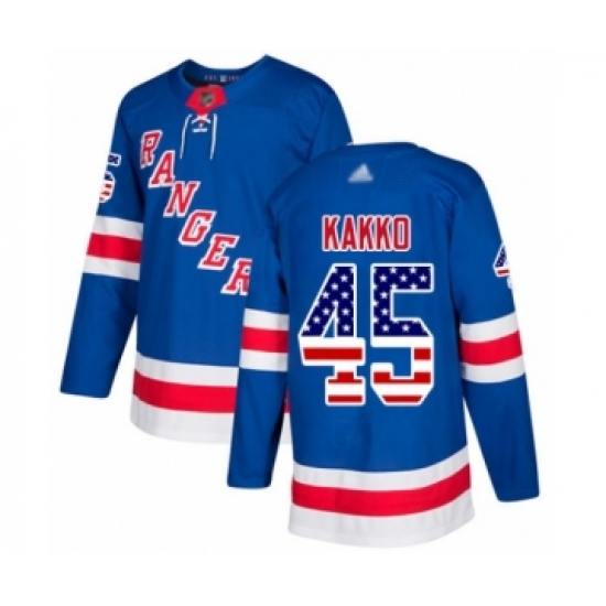 >Men's New York Rangers #45 Kaapo Kakko Authentic Royal Blue USA Flag Fashion Hockey Jersey
