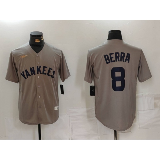 Men's New York Yankees #8 Yogi Berra Grey Throwback Stitched Cool Base Nike Jerseys
