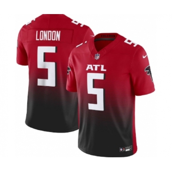 >Men's Nike Atlanta Falcons #5 Drake London Red Black 2023 F.U.S.E. Vapor Untouchable Limited Football Stitched Jersey