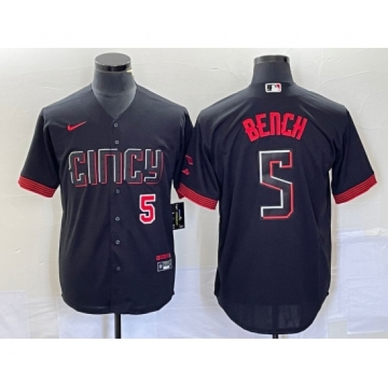 Men's Nike Cincinnati Reds #5 Johnny Bench Black 2023 City Connect Cool Base Stitched Baseball Jersey1
