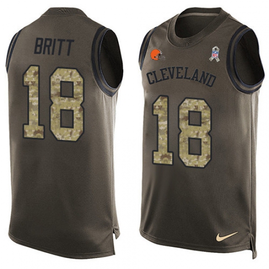 Home>NFL>Cleveland Browns>Kenny Britt>Men's Nike Cleveland Browns #18 Kenny Britt Limited Green Salute to Service Tank Top NFL Jersey