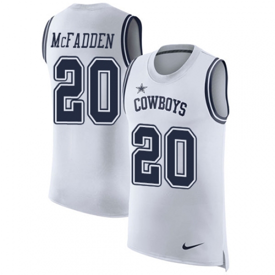 Home>NFL>Dallas Cowboys>Darren McFadden>Men's Nike Dallas Cowboys #20 Darren McFadden Limited White Rush Player Name & Number Tank Top NFL Jersey