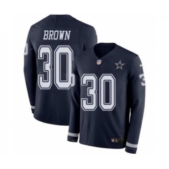 >Men's Nike Dallas Cowboys #30 Anthony Brown Limited Navy Blue Therma Long Sleeve NFL Jersey
