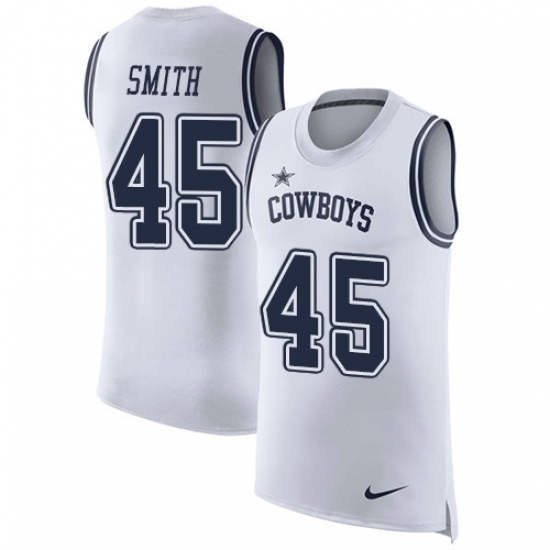 Home>NFL>Dallas Cowboys>Rod Smith>Men's Nike Dallas Cowboys #45 Rod Smith White Rush Player Name & Number Tank Top NFL Jersey