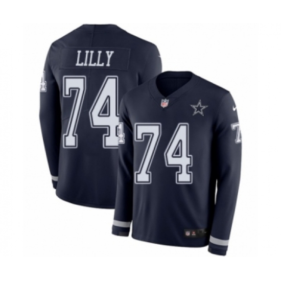 >Men's Nike Dallas Cowboys #74 Bob Lilly Limited Navy Blue Therma Long Sleeve NFL Jersey