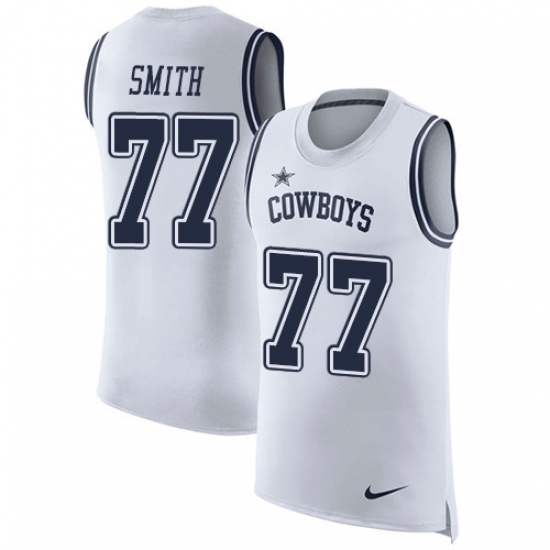 Home>NFL>Dallas Cowboys>Tyron Smith>Men's Nike Dallas Cowboys #77 Tyron Smith Limited White Rush Player Name & Number Tank Top NFL Jersey
