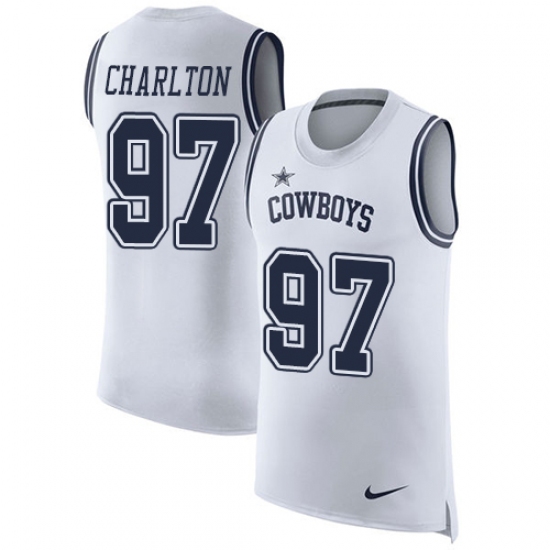 Home>NFL>Dallas Cowboys>Taco Charlton>Men's Nike Dallas Cowboys #97 Taco Charlton Limited White Rush Player Name & Number Tank Top NFL Jersey
