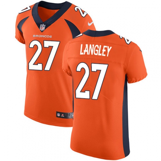 Home>NFL>Denver Broncos>Brendan Langley>Men's Nike Denver Broncos #27 Brendan Langley Orange Team Color Vapor Untouchable Elite Player NFL Jersey