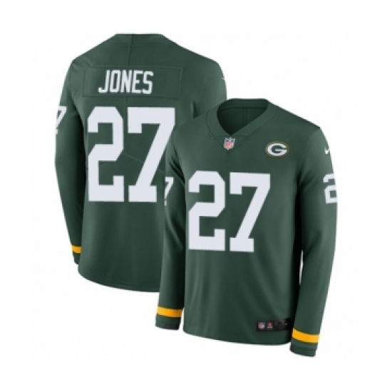 Men's Nike Green Bay Packers #27 Josh Jones Limited Green Therma Long Sleeve NFL Jersey