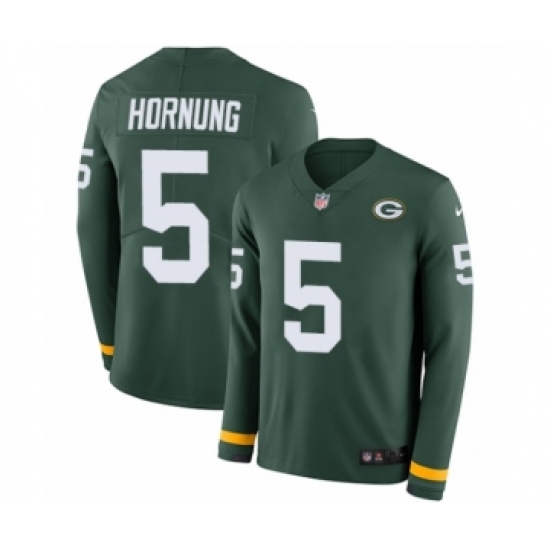 Men's Nike Green Bay Packers #5 Paul Hornung Limited Green Therma Long Sleeve NFL Jersey