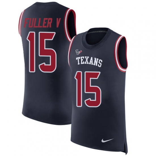 Men's Nike Houston Texans #15 Will Fuller V Limited Navy Blue Rush Player Name & Number Tank Top NFL Jersey