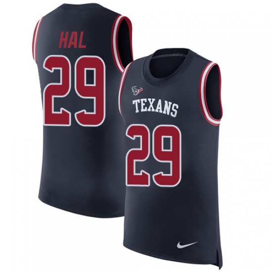 Men's Nike Houston Texans #29 Andre Hal Limited Navy Blue Rush Player Name & Number Tank Top NFL Jersey