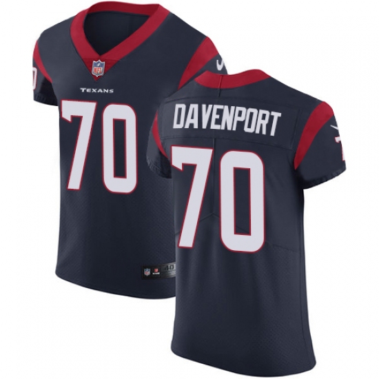 >Men's Nike Houston Texans #70 Julien Davenport Navy Blue Team Color Vapor Untouchable Elite Player NFL Jersey