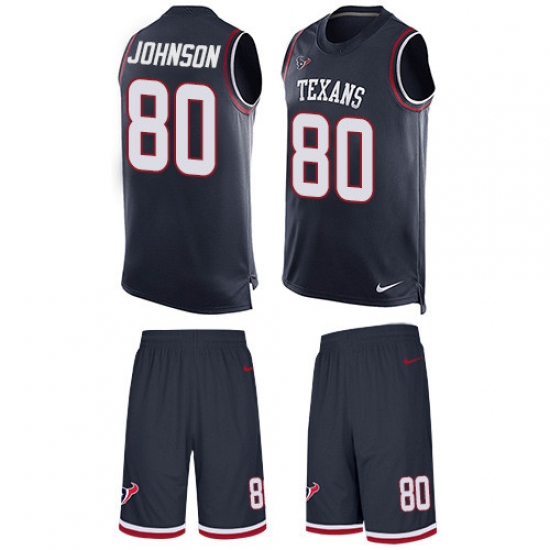 Men's Nike Houston Texans #80 Andre Johnson Limited Navy Blue Tank Top Suit NFL Jersey