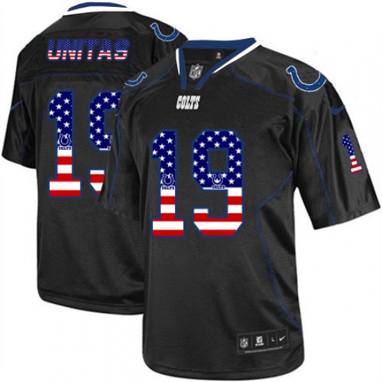 Home>NFL>Indianapolis Colts>Johnny Unitas>Men's Nike Indianapolis Colts #19 Johnny Unitas Elite Black USA Flag Fashion NFL Jersey