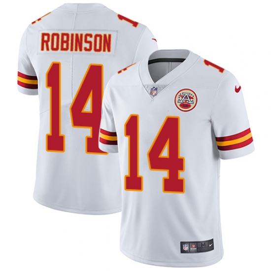 Home>NFL>Kansas City Chiefs>Demarcus Robinson>Men's Nike Kansas City Chiefs #14 Demarcus Robinson White Vapor Untouchable Limited Player NFL Jersey