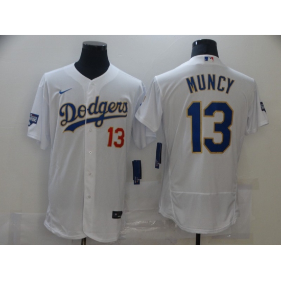 Men's Los Angeles Dodgers #13 Max Muncy White Blue Fashion Stitched Cool Base Limited Jerseys