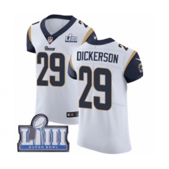 Men's Nike Los Angeles Rams #29 Eric Dickerson White Vapor Untouchable Elite Player Super Bowl LIII Bound NFL Jersey