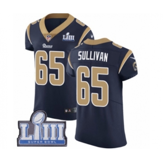Men's Nike Los Angeles Rams #65 John Sullivan Navy Blue Team Color Vapor Untouchable Elite Player Super Bowl LIII Bound NFL Jersey