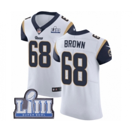 Men's Nike Los Angeles Rams #68 Jamon Brown White Vapor Untouchable Elite Player Super Bowl LIII Bound NFL Jersey