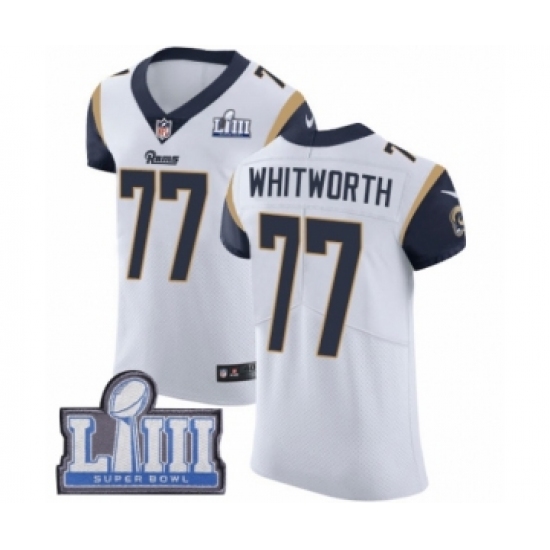 Men's Nike Los Angeles Rams #77 Andrew Whitworth White Vapor Untouchable Elite Player Super Bowl LIII Bound NFL Jersey