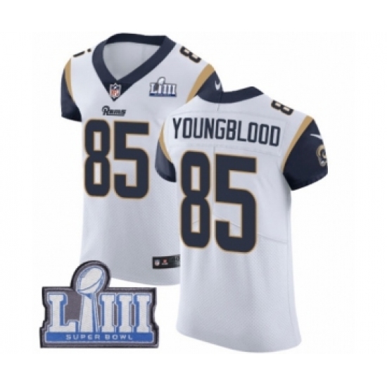 Men's Nike Los Angeles Rams #85 Jack Youngblood White Vapor Untouchable Elite Player Super Bowl LIII Bound NFL Jersey