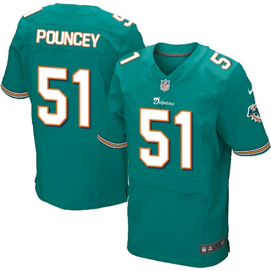 Men's Nike Miami Dolphins #51 Mike Pouncey Elite Aqua Green Team Color NFL Jersey